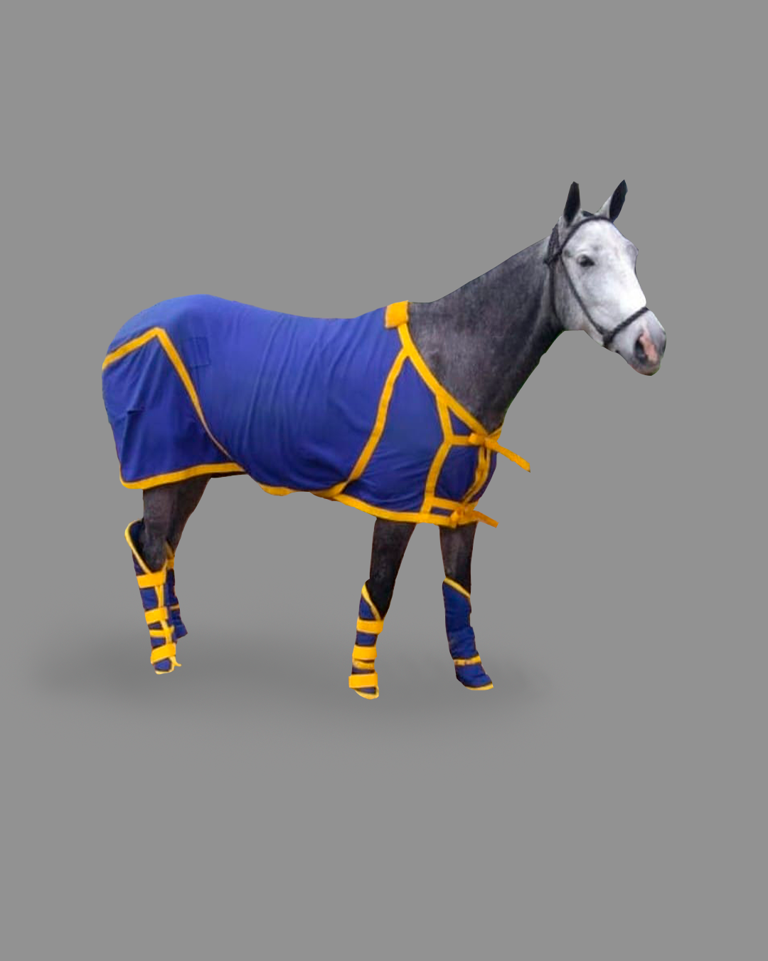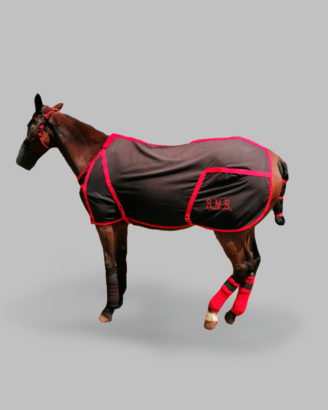 Desarrollada para optimizar el bienestar en caballos de polo, la manta combina tejidos de poliéster de alta densidad y microfibras avanzadas que mejoran la transpirabilidad y la resistencia ante condiciones adversas. Su diseño ergonómico, con costuras reforzadas y cierre ajustable, permite una cobertura integral que facilita la regulación térmica y previene lesiones musculares sin restringir la libertad de movimiento. Este producto, sometido a pruebas de durabilidad, está pensado para mantener el equilibrio perfecto entre confort, funcionalidad y rendimiento en escenarios de alta exigencia deportiva.
